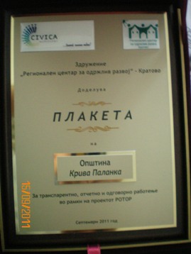 Општина Крива Паланка доби плакета за најтранспарентна општина од петте општини кои беа вклучени во проектот.