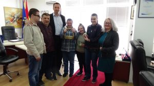 Штитениците од Одделението за дневен престој на лица со попреченост, денес беа во посета на градоначалникот на општина Крива Паланка, Борјанчо Мицевски.