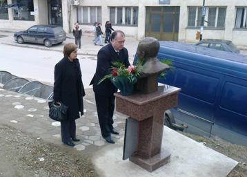 Положено свежо цвеќе пред бистата на Миле Крстевски