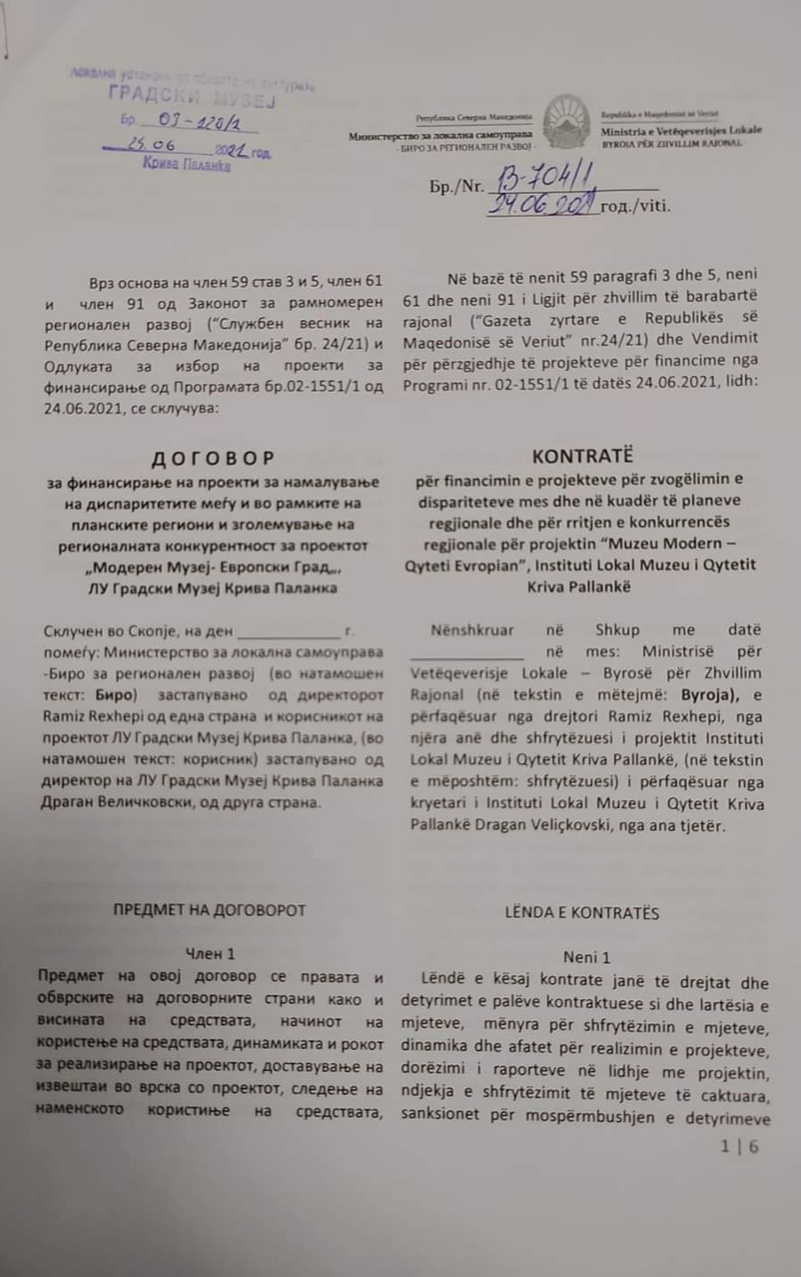 ЛУ Градски музеј и Општина Крива Паланка започнуваат со реализација на проектот „Модерен музеј – европски град“ којшто е одобрен за финансирање од Бирото за регионален развој на Министерството за локална самоуправа, во програма за намалување на диспаритетите меѓу и во рамките на регионите и зголемување на регионалната конкурентност. Одобрени се средства во висина од 1.593.000 денари.