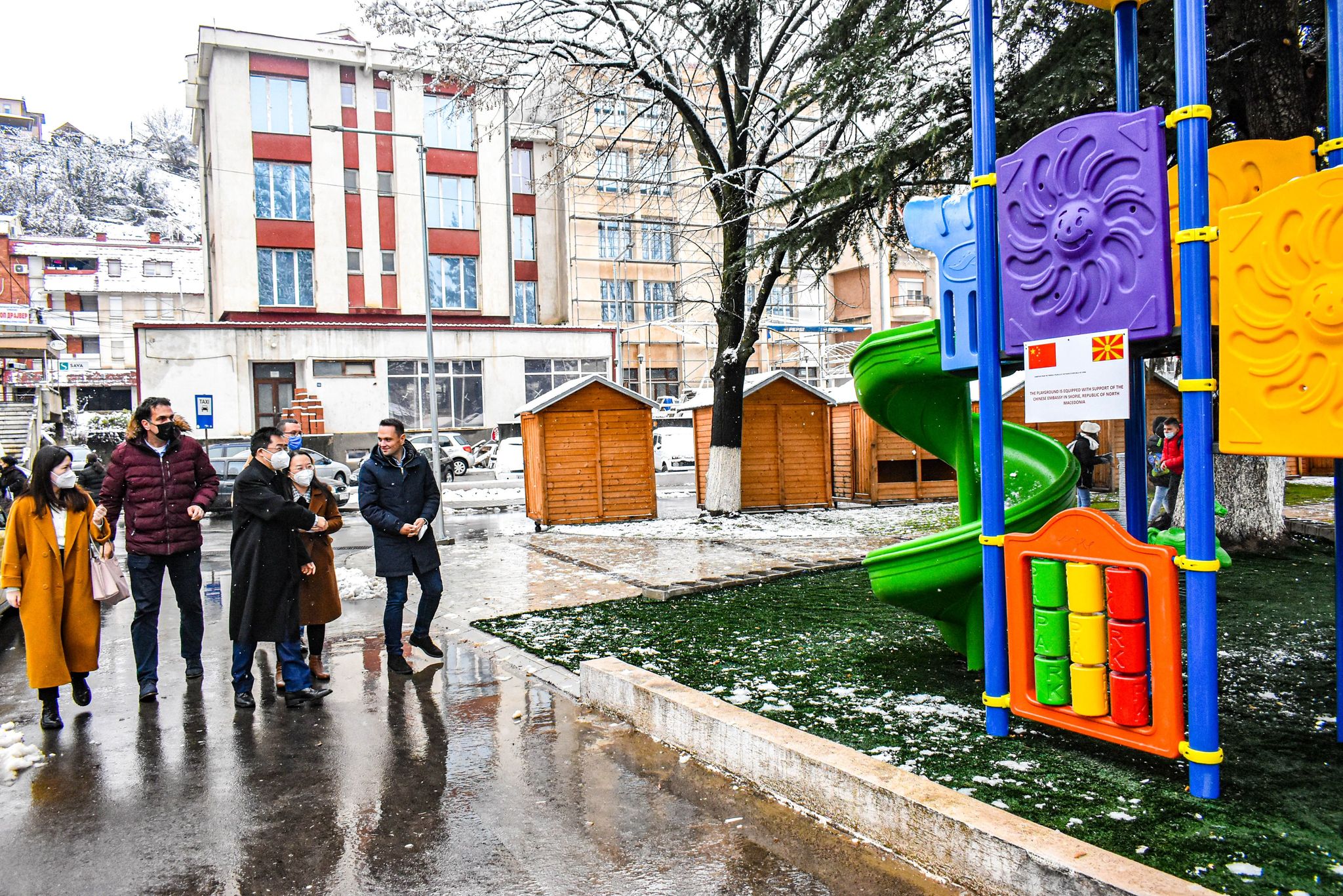 – Благодарение на помошта на Амбасадата на Народна Република Кина, го започнав мојот мандат со реализација на проект за намладите, кој воедно е и моја приоритетна програмска определба, и на мое огромно задоволство со овој проект централното градско подрачје доби нов и повесел лик, исполнет со многу детски насмевки и пријатен детски жагор. Ова можеби е мал проект, но има големи ефекти за најмладата популација од нашата оптиштина, изјави градоначалникот Сашко Митовски.