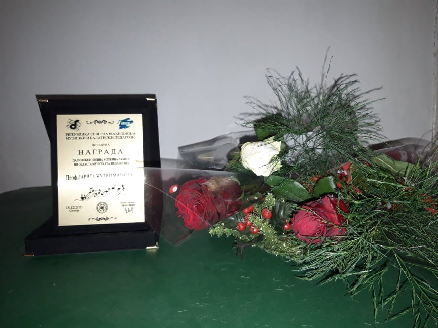 „Со нејзините ученици има освоено многу награди на државни и меѓународни натпревари, учествувала на повеќе семинари во својство на учесник и тоа од областа на образованието. Била член на жири комисија на повеќе натпревари, музички фестивали и конкурси. Доделувањето на наградите беше придружено и со свечен концерт. Овие награди се доделуваат од 2004 година“, велат од Здружението на музички и балетски педагози.