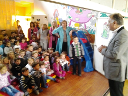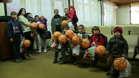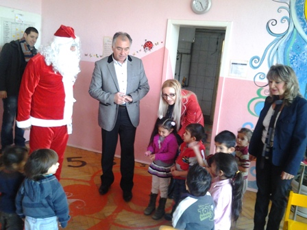 Најпрвин беше посетена детската градинка „Детелинка“ како и градинката Фриц-Аид каде престојуваат деца ромчиња, потоа беше посетен Дневниот Центар за деца со посебни потреби, а на крајот во големата сала на општина Крива Паланка им беа подарени новогодишни пакетчиња на децата од семејства кои се корисници на постојана парична помош до 3 годишна возраст, деца сместени во згрижувачки семејства и семејства кои имаат повеќе од три деца.