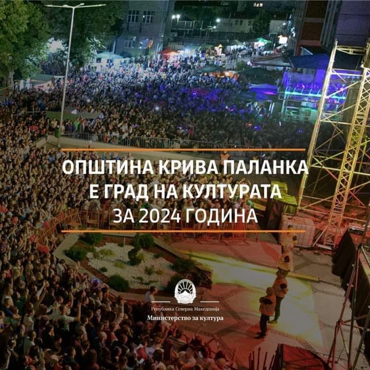 Благодарение на понудената квалитетна и содржински богата програма, Општина Крива Паланка ја заслужи довербата од комисијата при Министерството за култура, да биде избрана за пестолнина на културата во 2024 година.