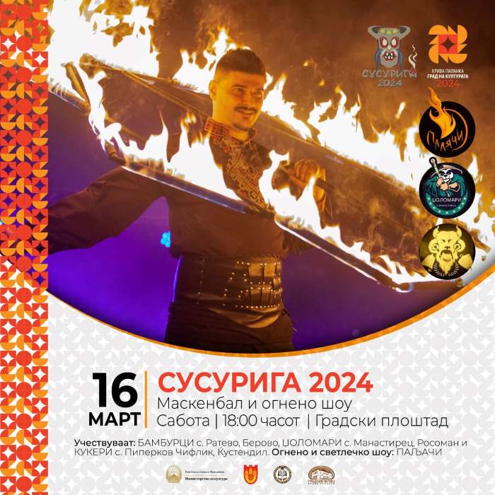 Општина Крива Паланка за првпат годинава ја организира манифестацијата „Сусурига 2024“, која ќе се оддржи на 16 март (сабота), на Градскиот плоштад, со почеток во 18 часот,  со што и официјално започнува програмата на „Крива Паланка –Град на културата 2024“.