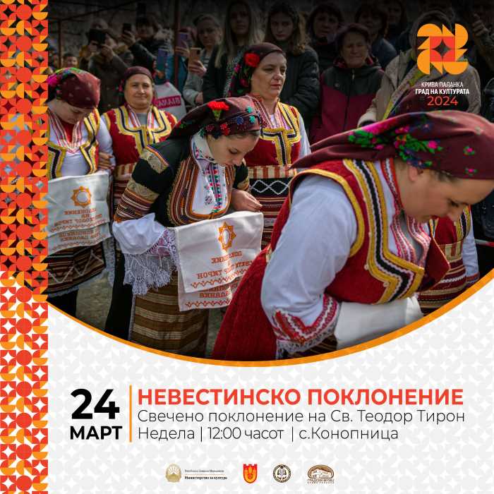 Во недела, 24 март,  во кругот на црквата „Свети Теодор Тирон“ во село Конопница , пак, ќе се одржи манифестацијата „Невестинско поклонение“, традиционален настан кој го носи духот на послесвадбените обичаите, во кои учествуваат невестите кои склопиле брак помеѓу две Тодорици.