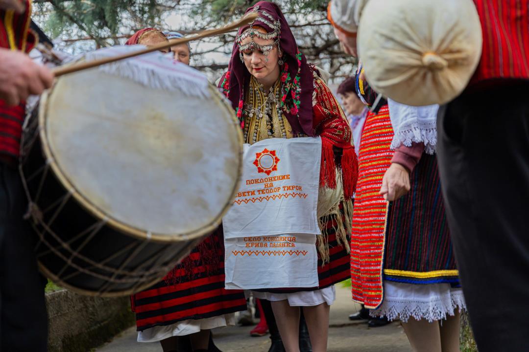 Повеќе парови снаи и свекрви од земјава и соседството учествуваа во послесвадбениот ритуал на 14-то издание на манифестацијата „Невестинско поклонение“, која традиционално се одржа во кругот на црквата „Свети Теодор Тирон“ во Конопница, Крива Паланка.