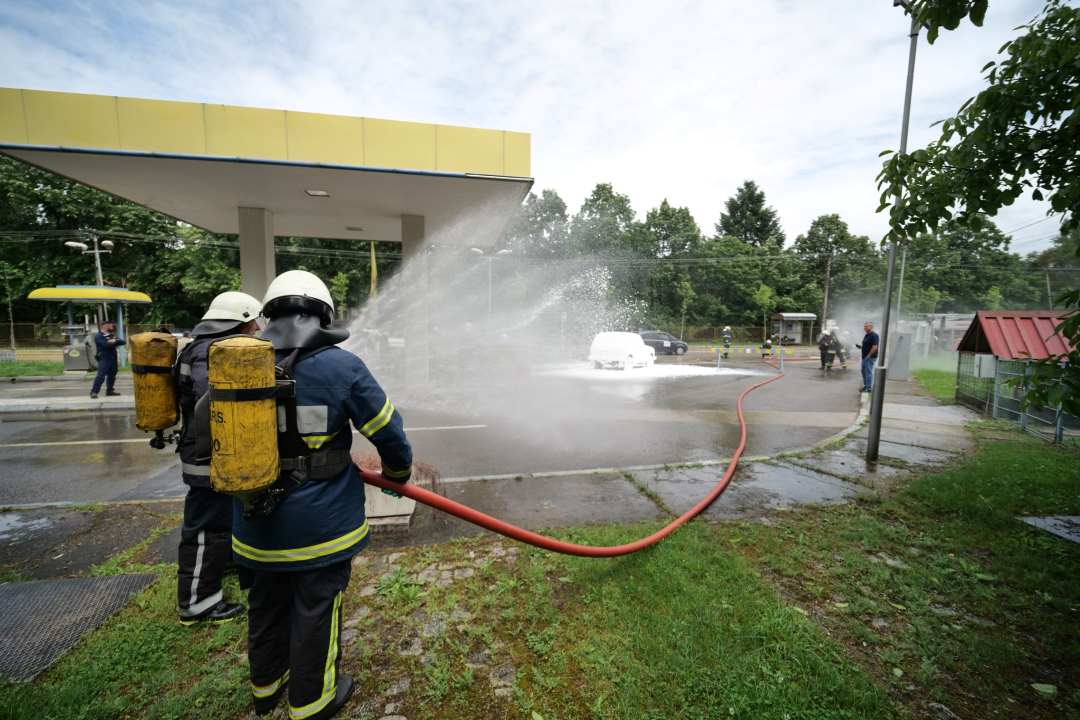 -Вкупно 13 пожарникари од нашата единица, со три противпожарни возила, со помош на вработените во бензинската пумпа и припадници на МВР, полициска сообракајна патрола од Крива Паланка се вклучија во тактичко–показната вежба за гасење на пожарот, бидејќи бензинската пумпа нема сопствена хидрантска мрежа и во случај на пожар се користат хидрантите од самата главна улица. Во објектот нема исталирано дојавувачи за пожар и пријавувањето беше извршено по телефон. Симулиравме ситуација на пожар настанат на пумпата за точење плин на возило. Причина за пожарот е краток спој на електричната инсталација на возилото. Пожарот е откриен благовремено но од самиот инцидент настанува и неконтролирано итекување на гас. Вака накратко изгледаше она што го приредивме како сценарио за денешната тактичко-показна вежба со која и го одбележавме 20 Мај но и на граѓаните им ги претставивме комплексноста и одговорноста на нашата работа како пожарникари и спасители, изјави Иле Коцевски, командир на ТППЕ Крива Паланка, кој рече дека речиси секоја година на сличен начин ја претставуваат нивната работа и го одбележуваат празникот на македонските пожарникари.