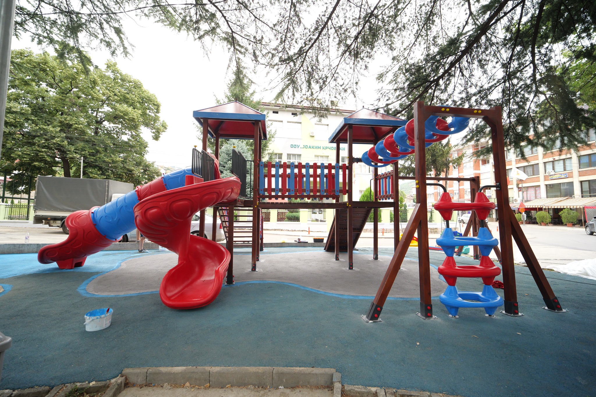 Дечињата од градот и најмладите посетители на општината можат да се дружат и забавуваат на новоуреденото детско игралиште со гумирана подлога по високи стандардни за безбедност, а на теренот се поставени мултифункционален детски реквизит со куќичка, лизгалки, клацкалки и лулашка.