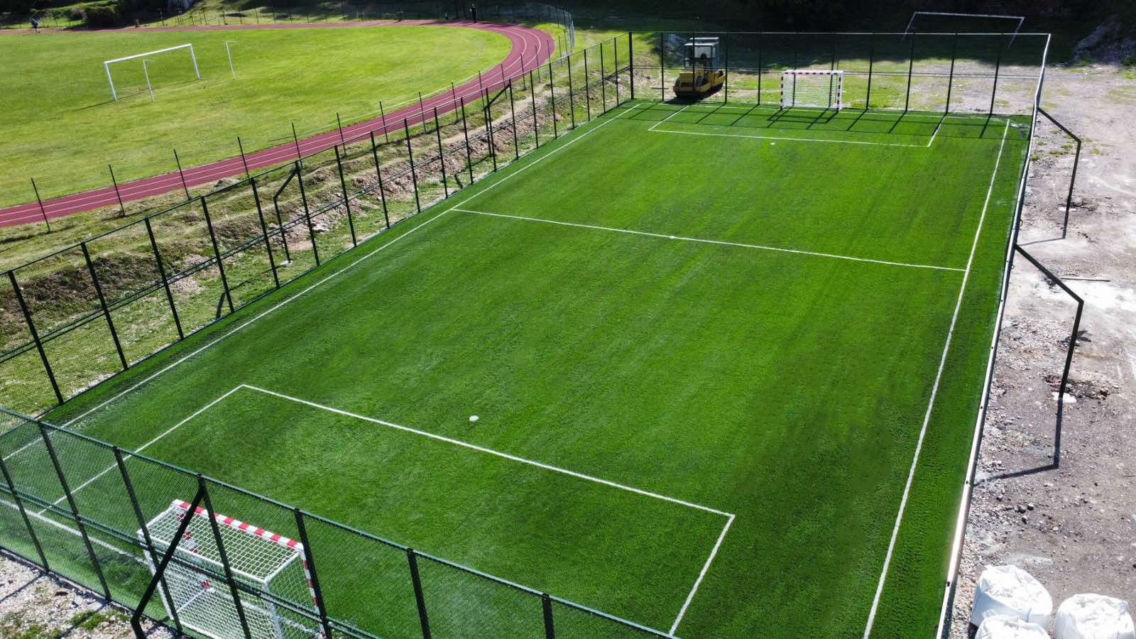 Завршено е уредувањето на теренот изграден на површина површина од 924 метри квадратни, со поставени соодветни градежни материјали, вештачка трева со стандардизиран квалитет: висина и густина на влакно на самиот полиетиленски материјал на тревната површина, поставени се фудбалски стативи и ограда во висина од четири метри.