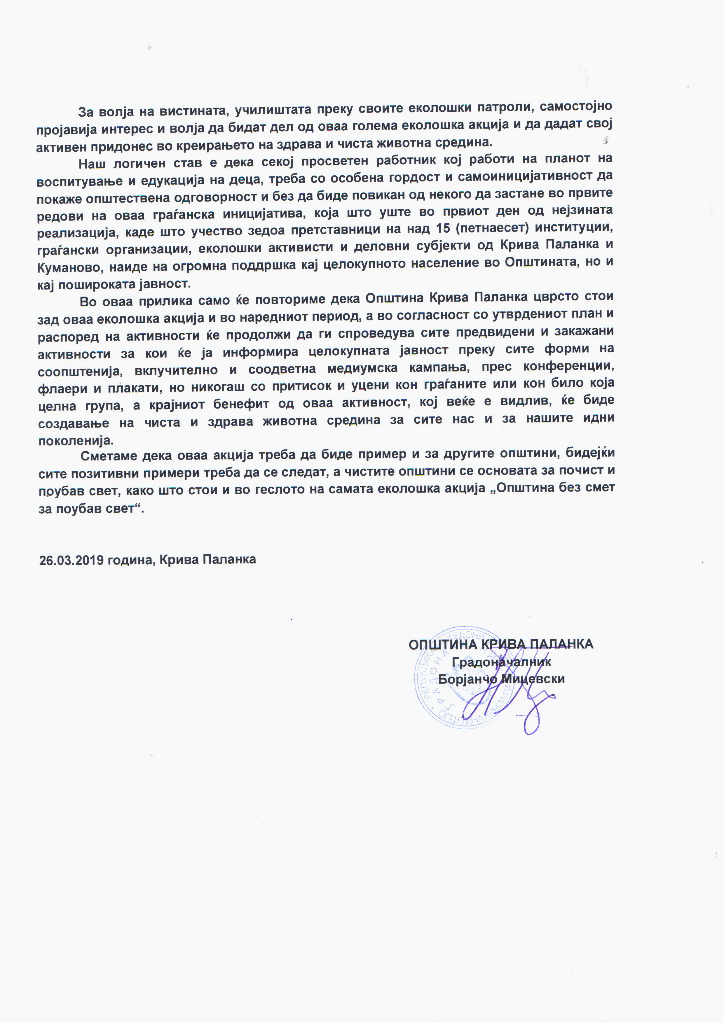 Демант на Општина Крива Паланка за текстот објавен на порталот Дневно МК